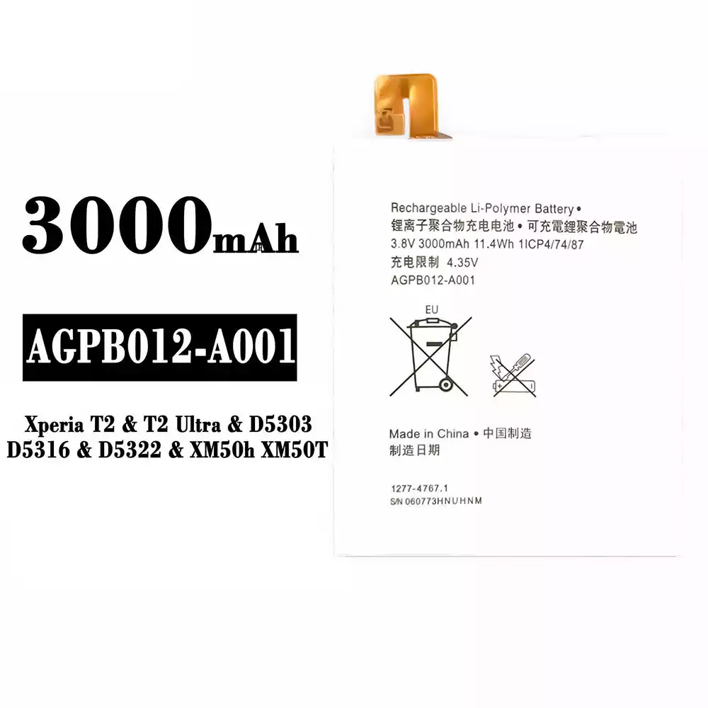 Model baterai AGPB012-A001 for Sony Xperia T2 / T2 Ultra / D5303 / D5316 / D5322 / XM50h / XM50T