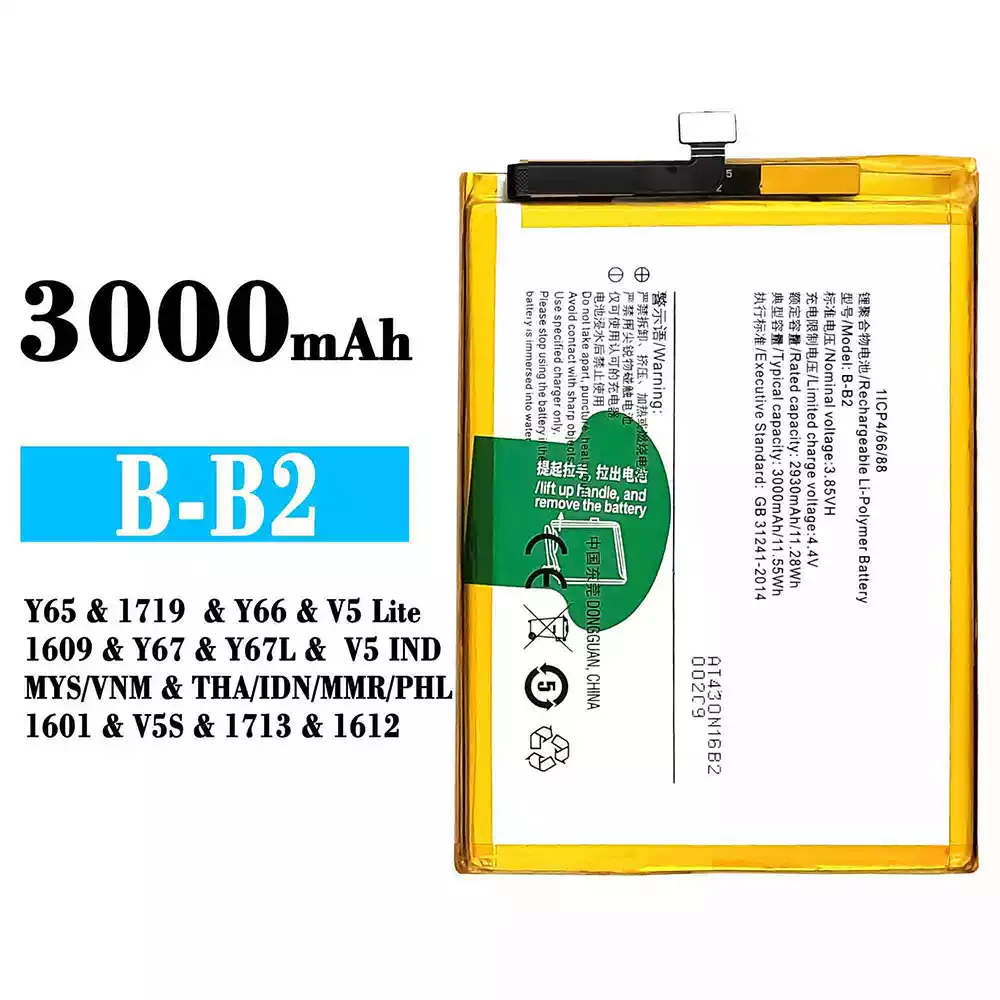 Model baterai B-B2 for VIVO Y65 / 1719 / Y66 / V5 Lite / 1609 / Y67 / Y67L / V5 IND MYS VNM / THA IDN MMR PHL 1601 / V5S / 1713 / 1612