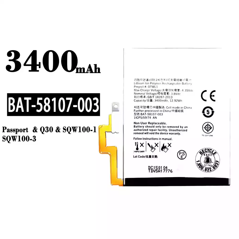 Model baterai BAT-58107-003 for BlackBerry Passport/Q30/SQW100-1/SQW100-3
