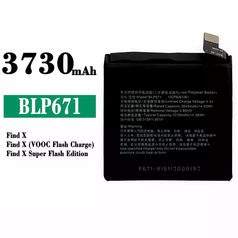 Model baterai BLP671 for OPPO Find X / Find X(VOOC Flash Charge) / Find X Super Flash Edition