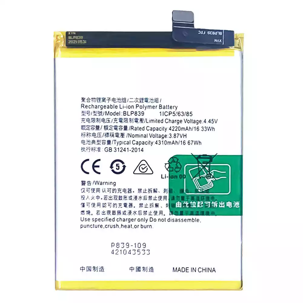 Model baterai BLP839 for OPPO A95 5G / A94 5G / Reno 5Z 5G / Reno 6Z / PELM00
