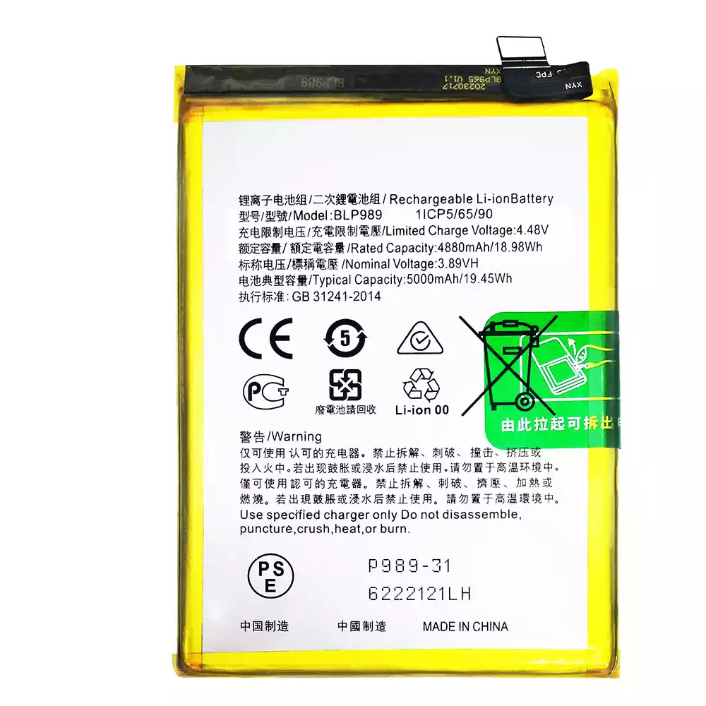 Model baterai BLP989 for OPPO A98 5G /1+nord N30 5G /Nord CE 3 Lite /OnePlus Nord N30 5G /CPH2389 /OnePlus Nord CE 3Lite /CPH2467 /CPH2465