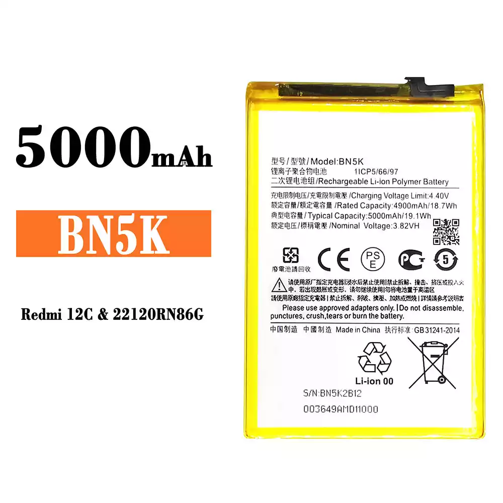 Model baterai BN5K for Xiaomi Redmi 12C / 22120RN86G