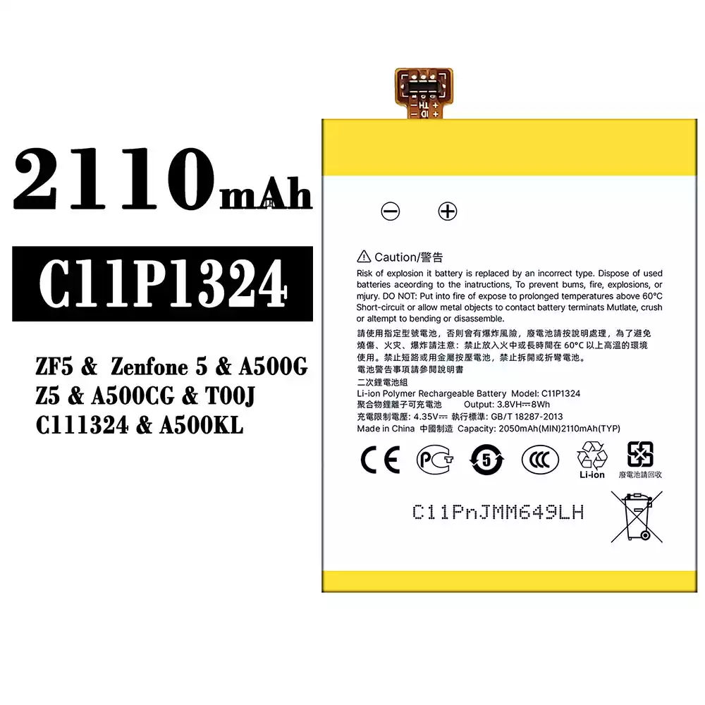 Model baterai C11P1324 for Asus ZF5 / Zenfone 5 / A500G / Z5 / A500CG / T00J / C111324 / A500KL