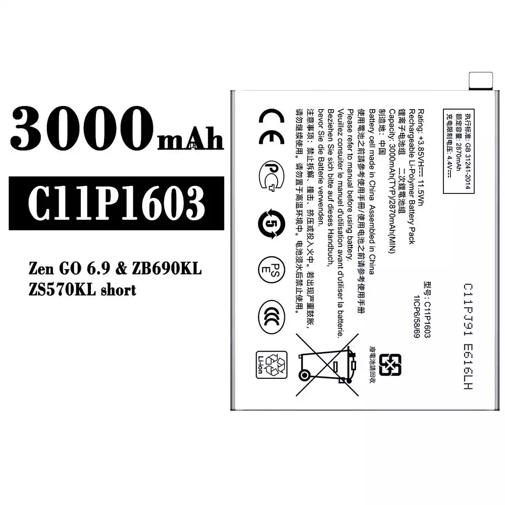 Model baterai C11P1603 for Asus Zen GO 6.9 / ZB690KL / ZS570KL Short