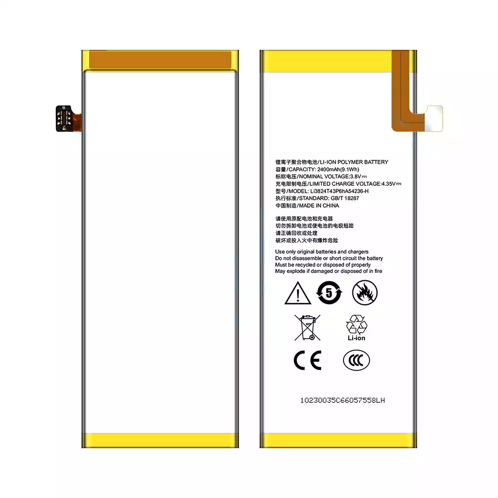 Model baterai Li3824T43P6hA54236-H for ZTE Blade S6 5.0/G717C/G718C 2400