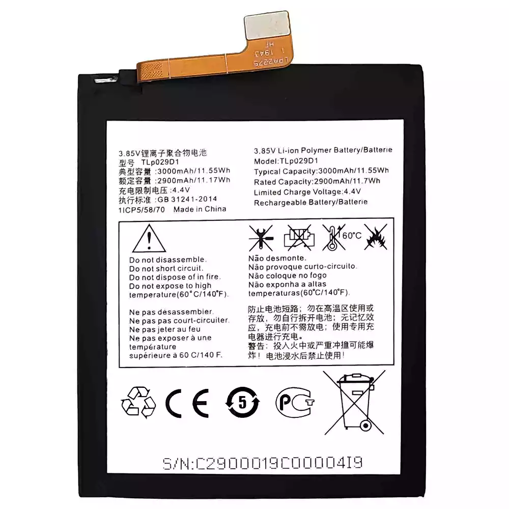 Model baterai TLP029D1 for Alcatel 3 2018 / 0T-5052 / 5052D / 5052A / 5052Y / 5 / 0T-5086 / 5086D /5086Y / 5086A / 3L 2018 / OT-5034 / 3x 2018 / 0T-5058 / 50581 / 5058T / 5058Y / 5058A / 5058J
